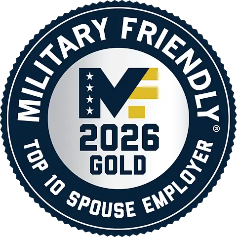 Military Friendly is the standard that measures an organization’s commitment, effort, and success in creating sustainable and meaningful benefits for the military community. Over 2,900 organizations compete for Military Friendly® designation annually. Military Friendly is owned and operated by VIQTORY, a service-disabled, veteran-owned small business. VIQTORY, Military Friendly®, trademarks and logos are not affiliated with nor the property of the Department of War or any other federal agency. Results are produced via a rules-based algorithm.