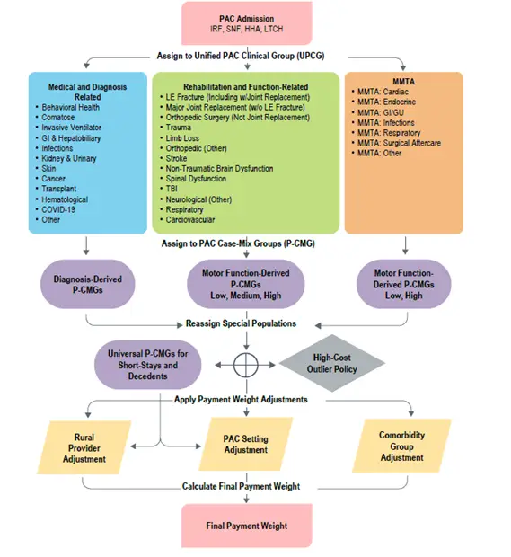 - PAC Setting Types: An adjustment accounts for the relative costliness of treating the patient in different settings, which also varies across UPCGs
